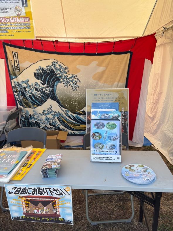 当日は、泉大津市のPRブースにて第45回全国豊かな海づくり大会のチラシやノベルティの配布を行い、多くの方に大会について知っていただく機会となりました。