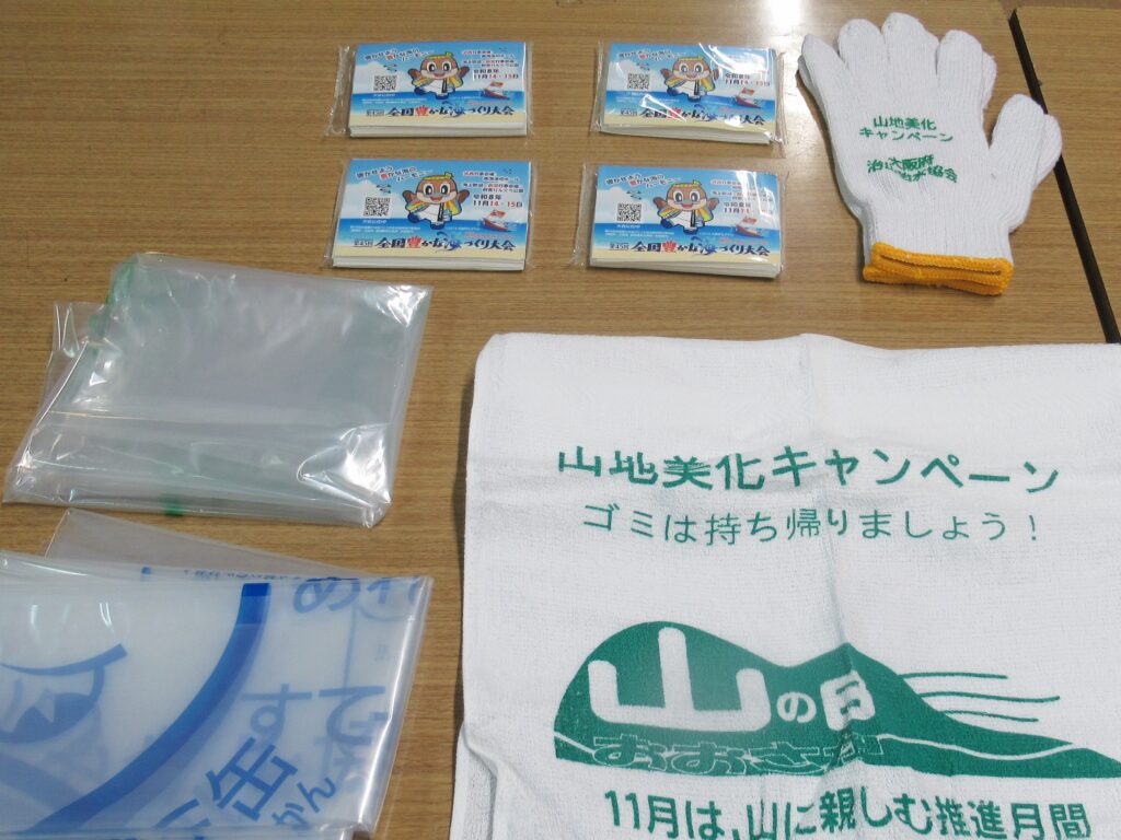 当日はノベルティを配布して、第45回全国豊かな海づくり大会のPRを行いました。