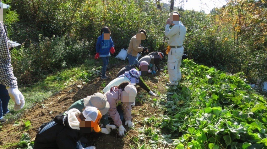 | 内容 | 巣箱の架け替え・つるや木の実でリース作り・芋ほり体験 |