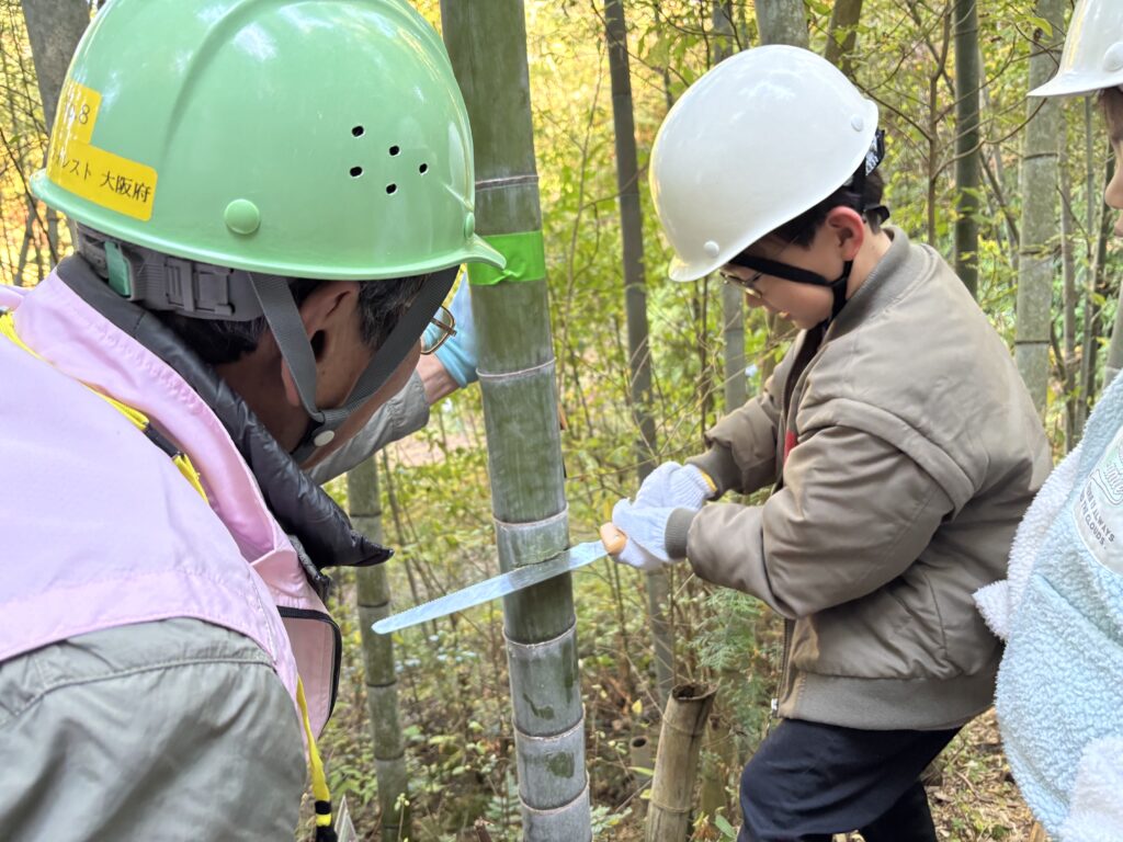 子どもたちに森と人との関わりについて理解を深めてもらうために、楽しく森林と触れ合う機会を提供する活動です。この活動は、大阪府の仲介により企業等がNPO法人等森林ボランティア団体、地域住民と連携し、子どもたちの豊かな感性を森林体験から育む取組です。清水建設株式会社は大阪府アドプトフォレスト「冒険の森づくり」を協賛行事として開催しました。本活動は清水建設株式会社のCSR活動として実施されています。