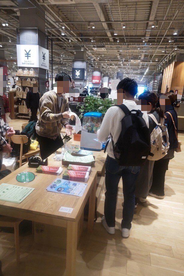 無印良品 みのおキューズモールにおいて、チラシやノベルティを配布して第45回全国豊かな海づくり大会のPRを行いました。