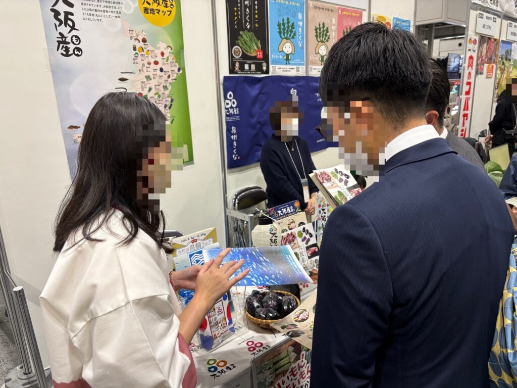 大阪府流通対策室のブースにおいてチラシを配布して、第45回全国豊かな海づくり大会のPRや協賛のご案内を行いました。