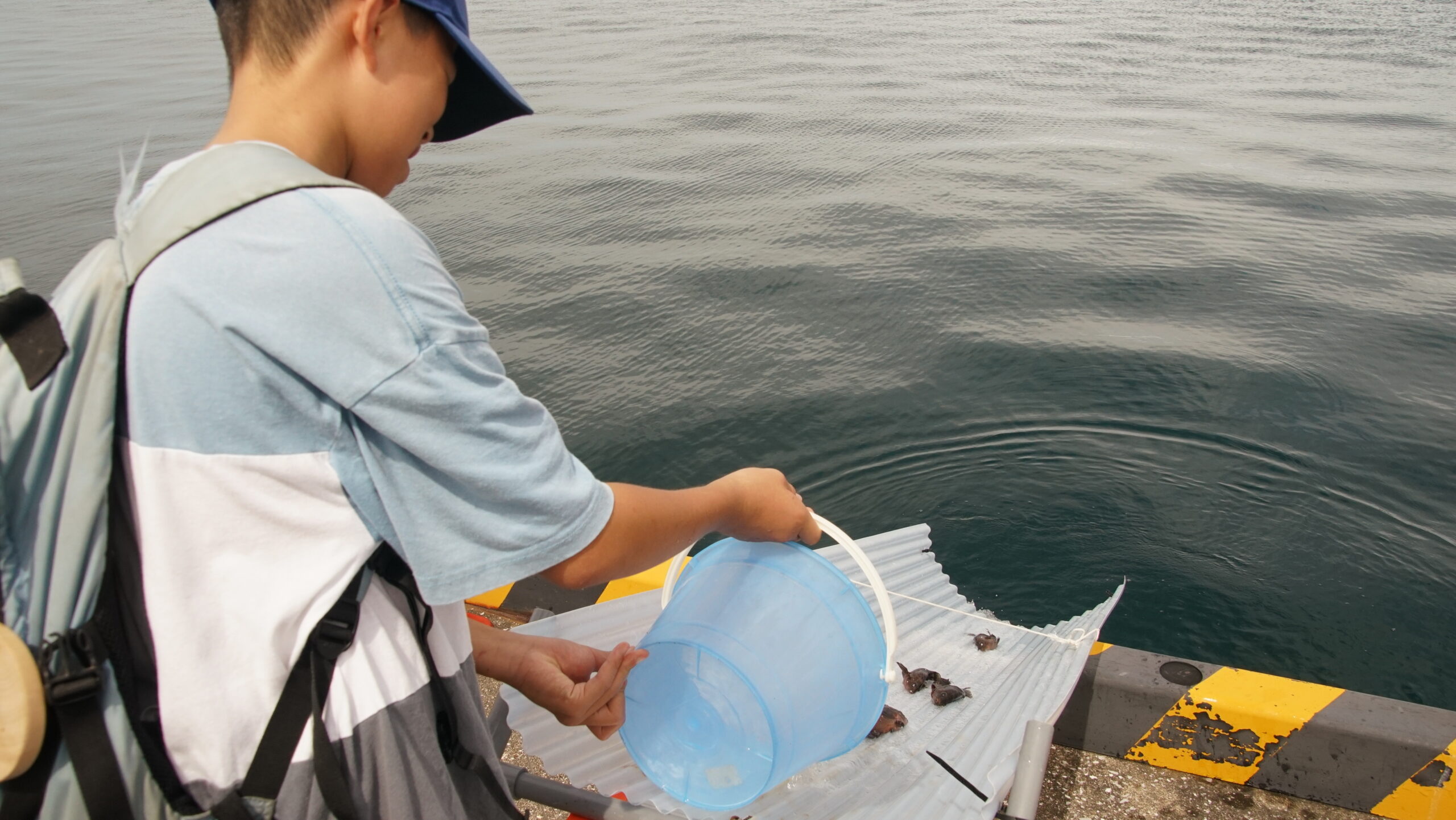 | 内容 | ・関西エアポート株式会社、大阪府漁業協同組合連合会の大阪湾の環境保全の取り組み紹介 ・チャーター船による空港周辺の藻場環境の見学と海域で採れる魚や漁の説明 ポートターミナルにて水槽でのキジハタ展示と放流体験、記念撮影 |
