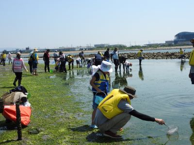| 内容 | 干潟の生物観察、プラスチックごみ等の浜辺清掃、干潟への海砂補給 等 |