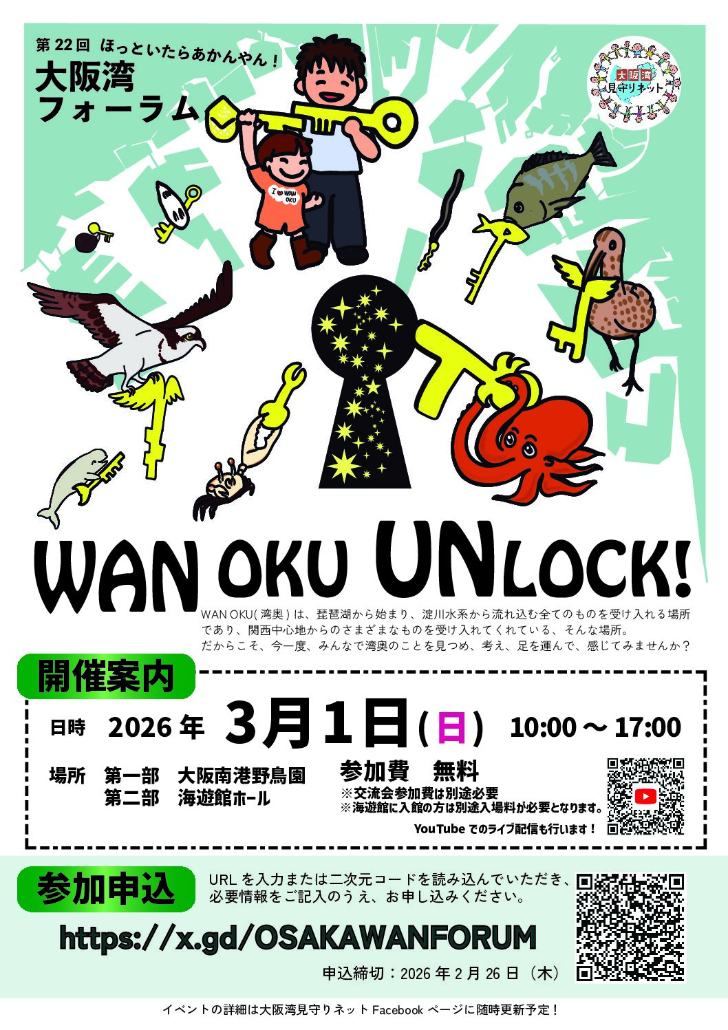 イベント開催前【協賛行事】第22回ほっといたらあかんやん!大阪湾フォーラム 「WAN OKU UNLOCK!」